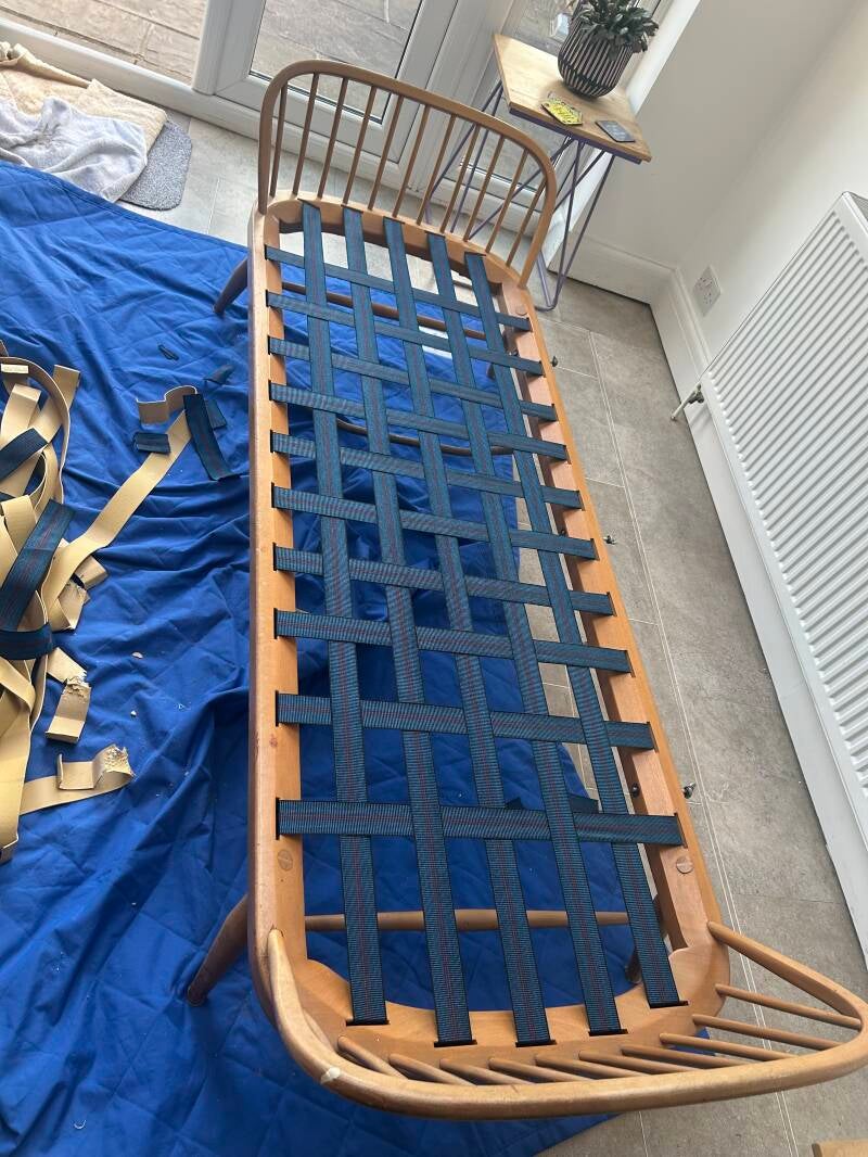 Re-Webbing is replacing the worn or damaged webbing with new elasticated webbing, offering a cost-effective way to restore the structure and firmness to your seat platform.